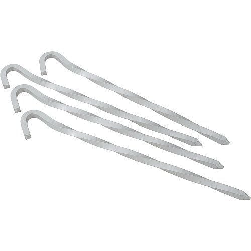 Dört adet bükülmüş alüminyum çadır kazığı.