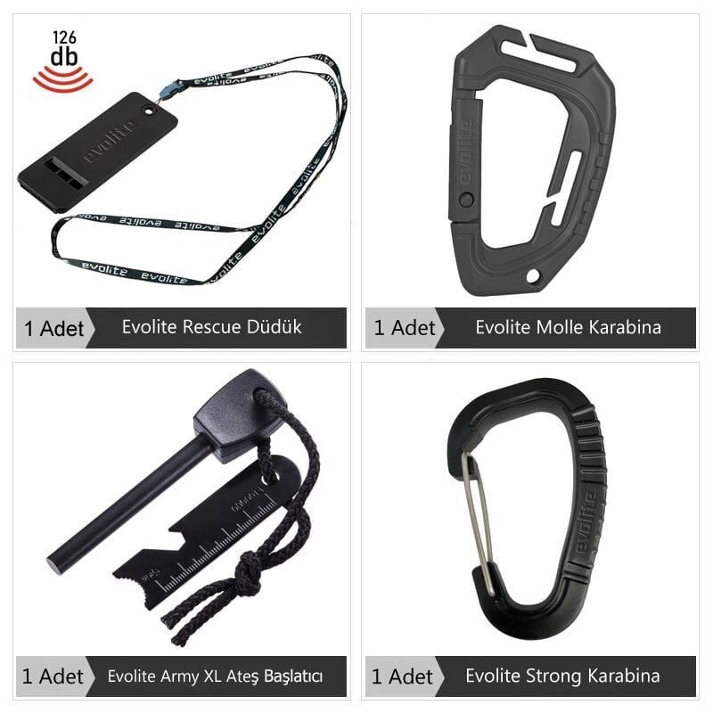 Yüksek kalite Survival, Rescue Düdük 3 Gözlü tasarımı sayesinde 126 desibel ses verir Acil Sinyal Kurtarma Yardımı Kamp Yürüyüş Kiti Düdük üç deliğe sahiptir, her deliğin sesi farklıdır, birleştiğinde yüksek frekans verir. 90 cm Evolite logolu boyun Askısı sayesinde kolay taşıma, kaybetmesi kolay değil. Kaybolduğunuzda Konumu bildirmeniz için açık havada yüksek desibel sayesinde kolayca bulunursunuz. Tehlike durumunda, yardım için yakındaki insanları çekmek için zamanında ses verin.